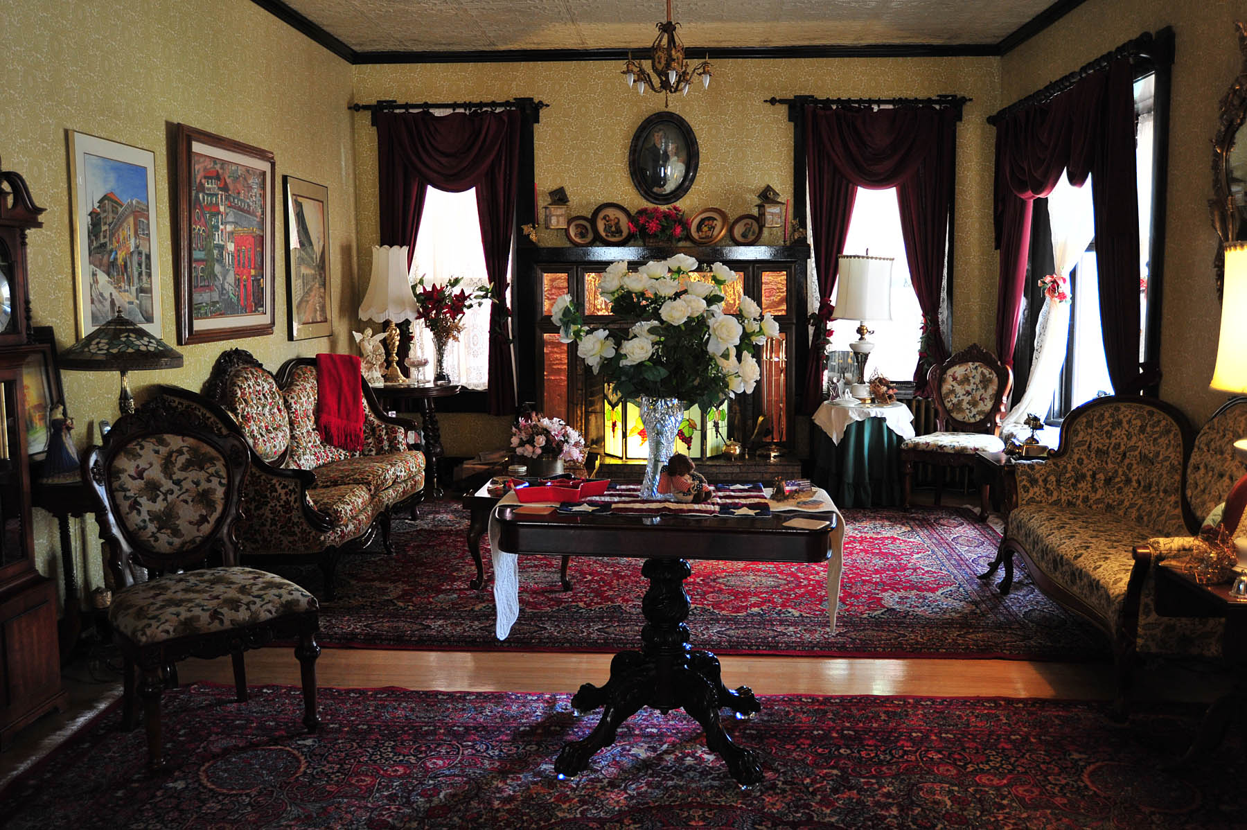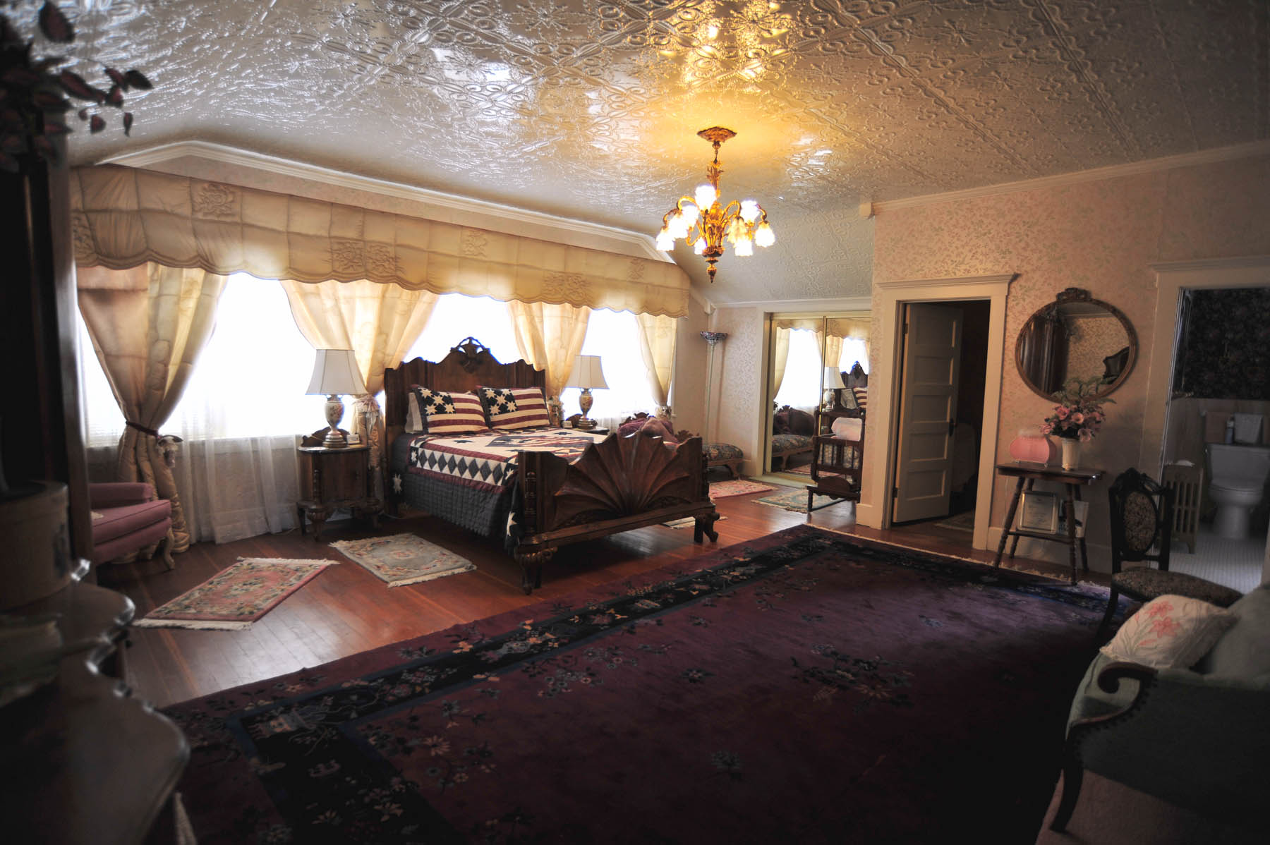 Guest rooms range in size from 150 sq. feet through a spacious 500 sq. foot master bedroom. As you can see in the row of photos to the left, every room is magnificently decorated. Period wallpaper adorns the walls and antiques, from collectable grade to family heirlooms to museum quality are on display throughout the home and in the bedrooms. All rates include a full breakfast, cooked to order, and served in the elegant dining room. (Both dining room and kitchen are pictured to the left.) Guests may select their breakfast from a menu which includes fresh fruit salad, juice, coffee, tea, milk, bacon, eggs, cottage fries, homemade granola, french toast made with homemade whole wheat bread, broccoli/cheese quiche, crepes filled with scrambled eggs topped with an Holandaise sauce, eggs Benedict and homemade toast and jellies.