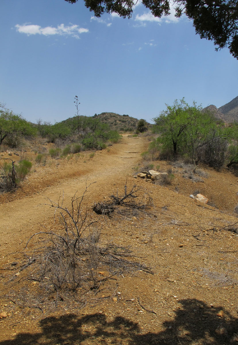 Note: The dirt road through Apache Pass is well-maintained and is no problem for the family sedan but...it is dirty, dusty and somewhat rough. The trail from the parking area in to Fort Bowie is not challenging for most people. Hiking boots or shoes are recommended. The trail is, particularly during the summer, hot and dry. Total distance in and out is 3 miles. Benches are placed frequently along the trail. Water is available at the visitor center located beside the ruins of the fort but it's always a good idea to carry extra fluids. Rest rooms are located at the visitor center and the parking area; no fees to enter the site, no camping area.