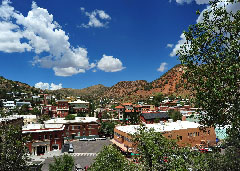 Whether you intend spending a day, a weekend or even a week or two walking the hills, bicycling, visiting art galleries...or just getting away from the "real world," Bisbee offers a welcome change. Our mile high elevation contributes to temperatures averaging about ten degrees cooler than Tucson and fifteen less than Phoenix (we're relying on the dry adiabatic lapse rate for calculations). Population is slightly more than five thousand, so you'll be treated to clean air, little or no traffic, and a relaxed style of life reminiscent of years gone by. There's a golf course in nearby Naco, Arizona, mountain trails for hikers, and plenty of attractions in town or just a few miles away.